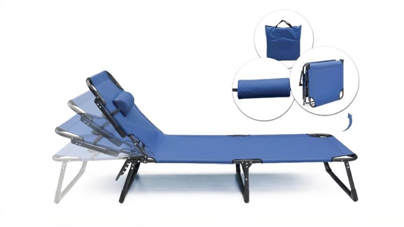 מיטת קמפינג ושיזוף מתקפלת Premium – כחול