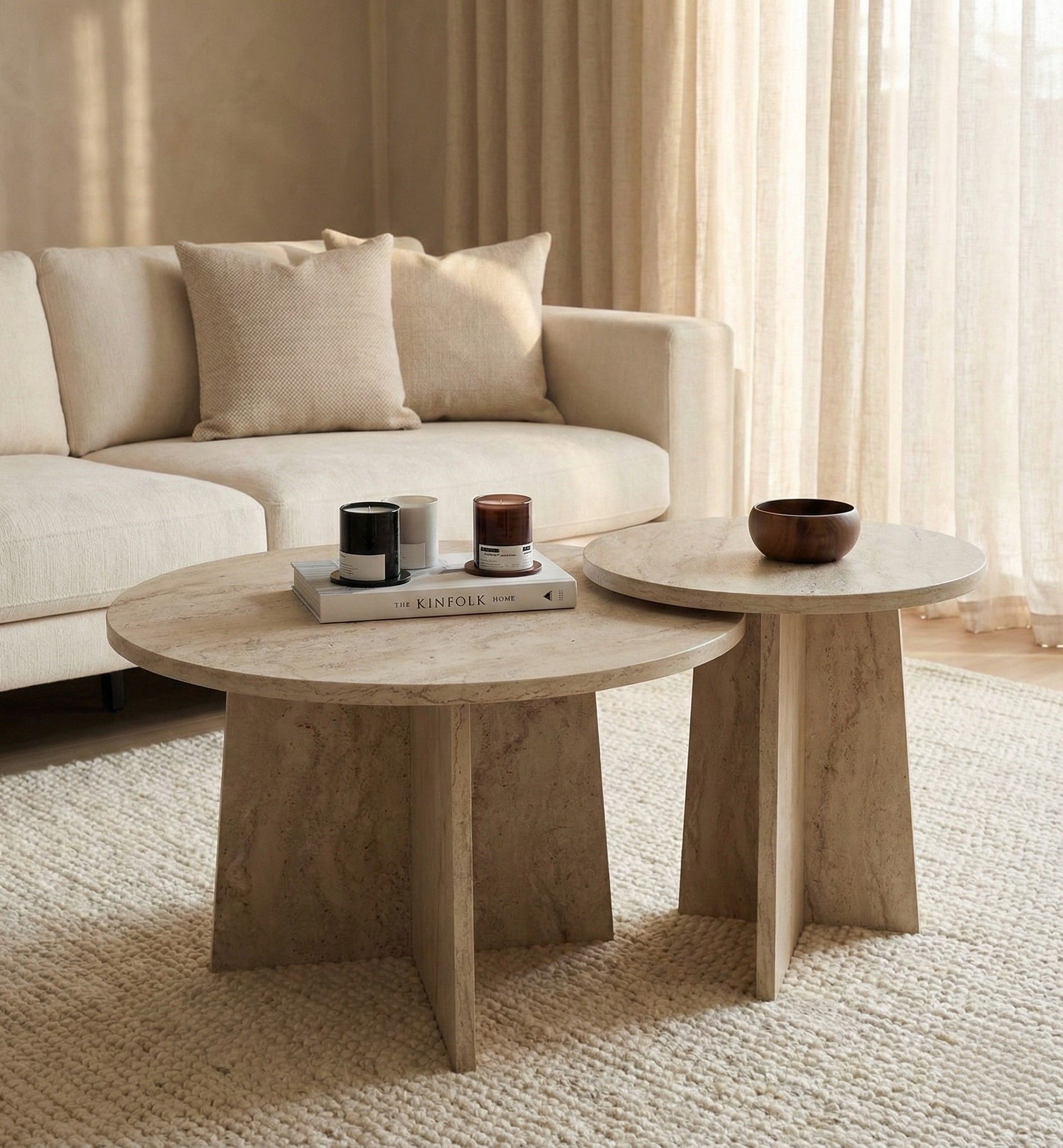 זוג שולחנות סלון מעוצבים בקווים נקיים, המתאימים לכל חלל מודרני שרוצה לקבל טאץ’ חם ואלגנטי בלי להתאמץ. השילוב בין שני הגדלים מאפשר שימוש חכם ונוח – כשולחנות מרווחים לאירוח, או כשכבת עיצוב שמשלבת עומק בחלל.
